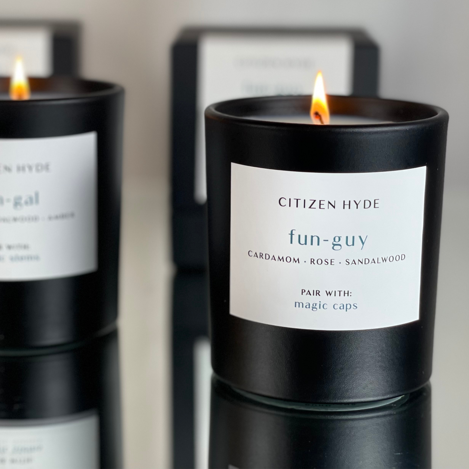 Create a magical ambiance and elevate your sensory experience with the Fun-Guy Citizen Hyde Candle, the perfect companion for your journey into the world of magic caps.